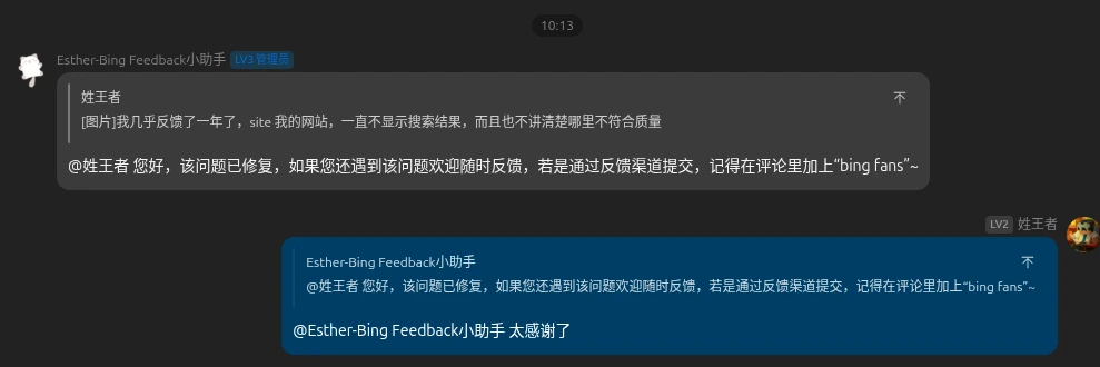@Bingfeedback小助手 Ailsa、Esther-Bing Feedback 小助手;- 🌟 方法二:按照必应官方指引,前往必应官方反馈通道提交,提交时请带上问题复现、排查等必要信息,在描述评论中注明 “bing fans”,官方会重点关注哦!