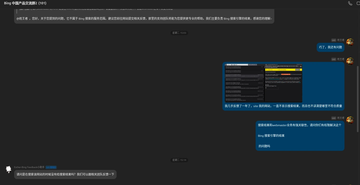 我个人强烈建议直接在群内 @ 小助手,然后详细描述你的 Bing 掉收录问题。