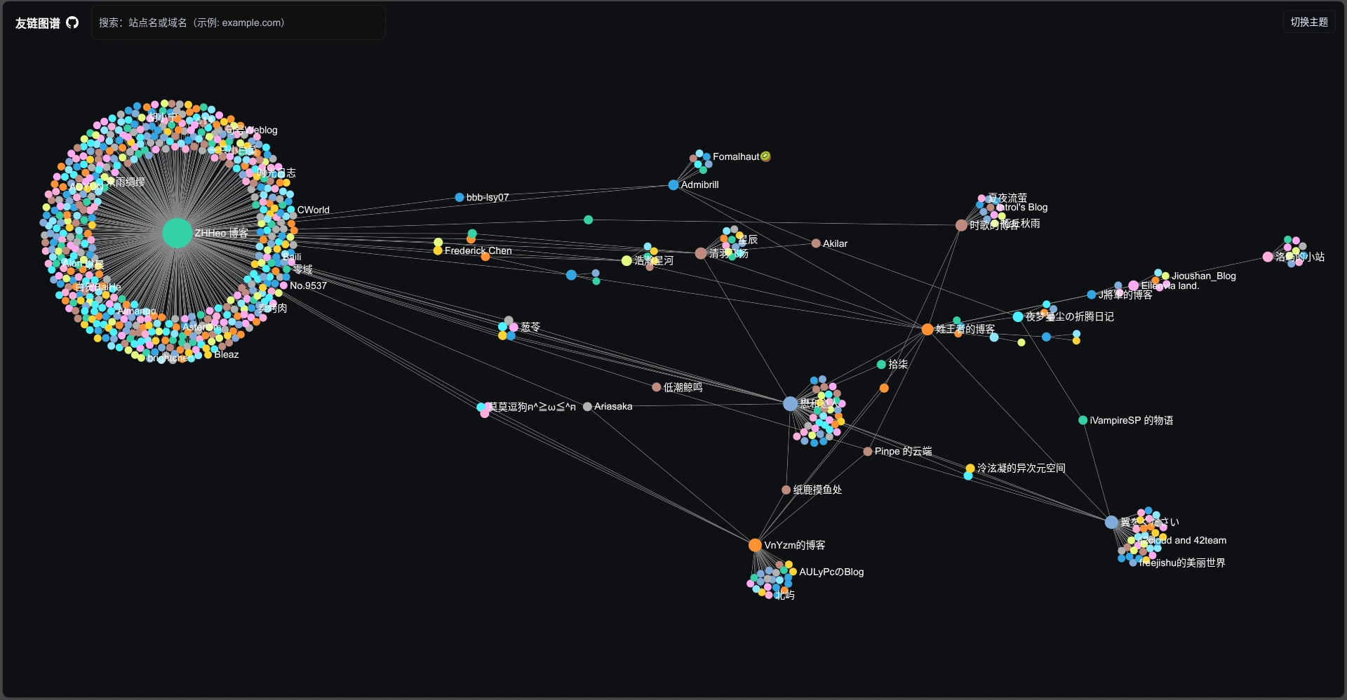 发现兜兜转转发现能够回到我自己的博客,这让我不禁想到了 六度理论 ,为了直观地展示友链的关系,也为了展现web的 本意 ,我vibe code了一个网站,来展现友链的关系